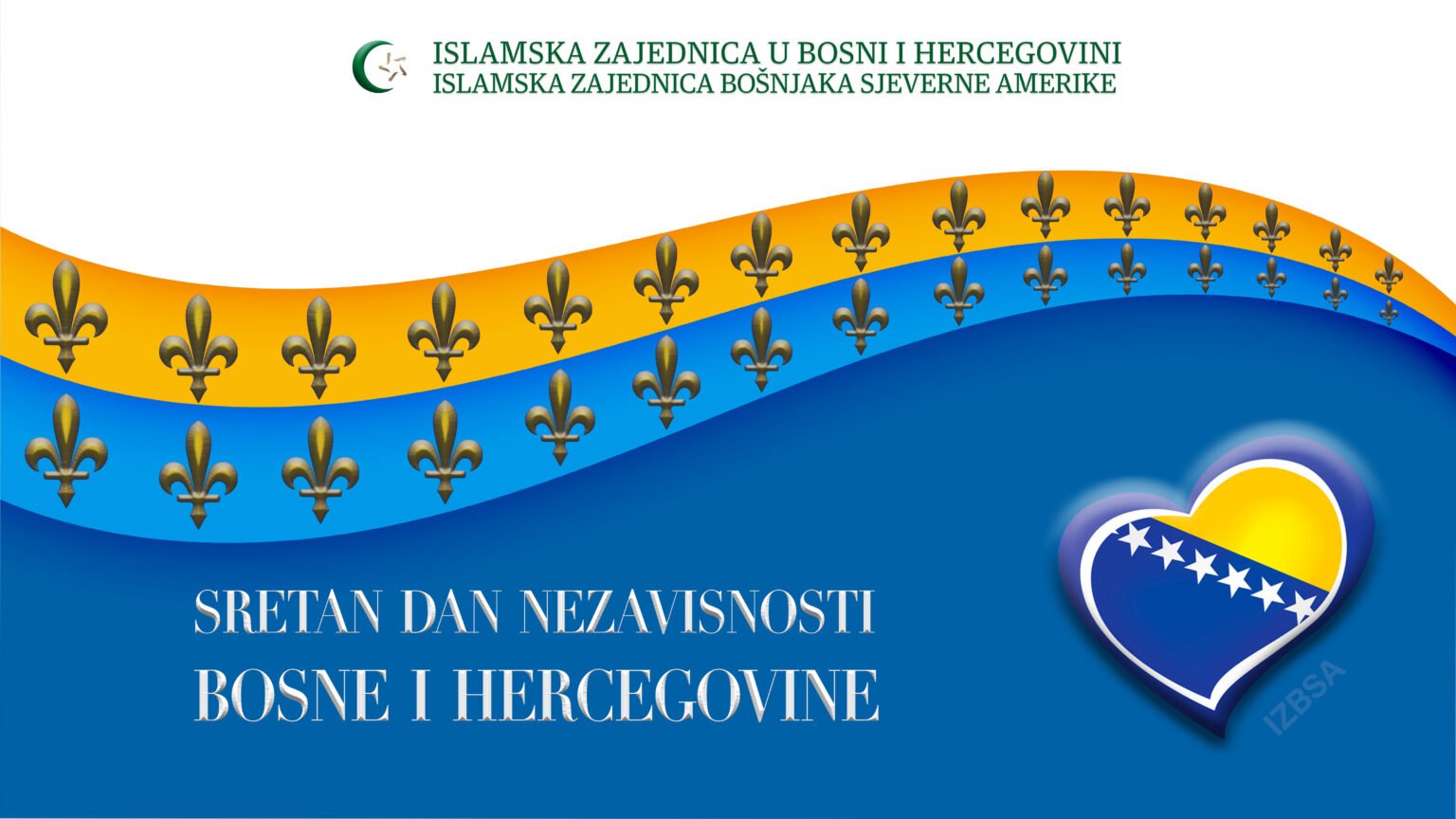 Povodom nastupanja 30 godina od referenduma za nezavisnost Bosne i Hercegovine, svim građanima Bosne i Hercegovine u domovini i dijaspori, Islamska zajednica Bošnjaka Sjeverne Amerike, čestita 1. mart, Dan nezavisnosti.