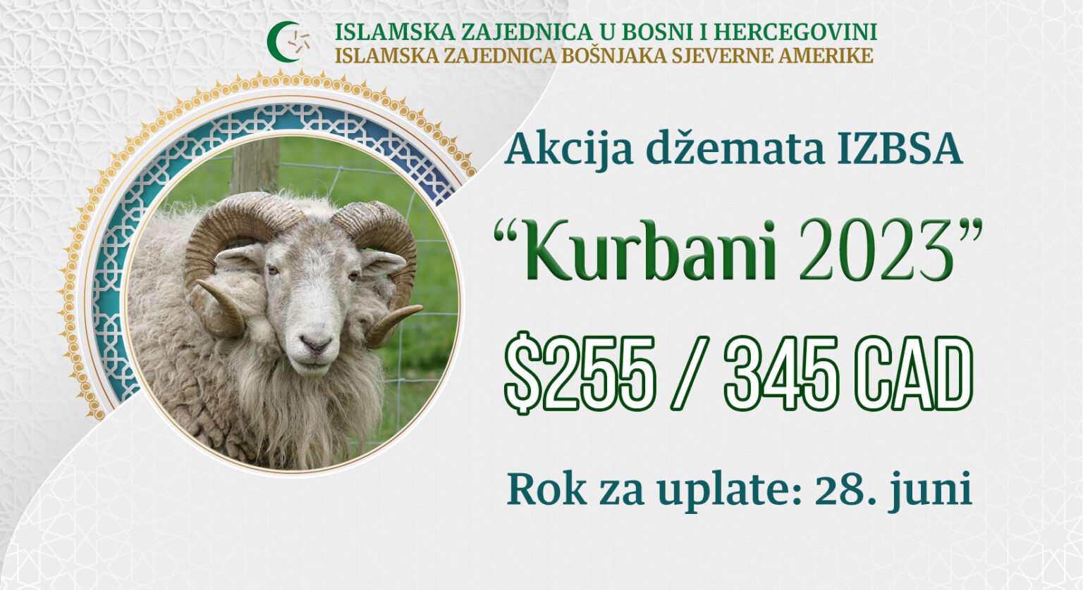 Islamska Zajednica Bošnjaka Sjeverne Amerike (IZBSA) se ovim putem obraća imamima, vršiocima dužnosti imama i zvaničnim predstavnicima džemata IZBSA na području Sjeverne Amerike da u svojim džematima organizuju prikupljanje uplata za kurbane.