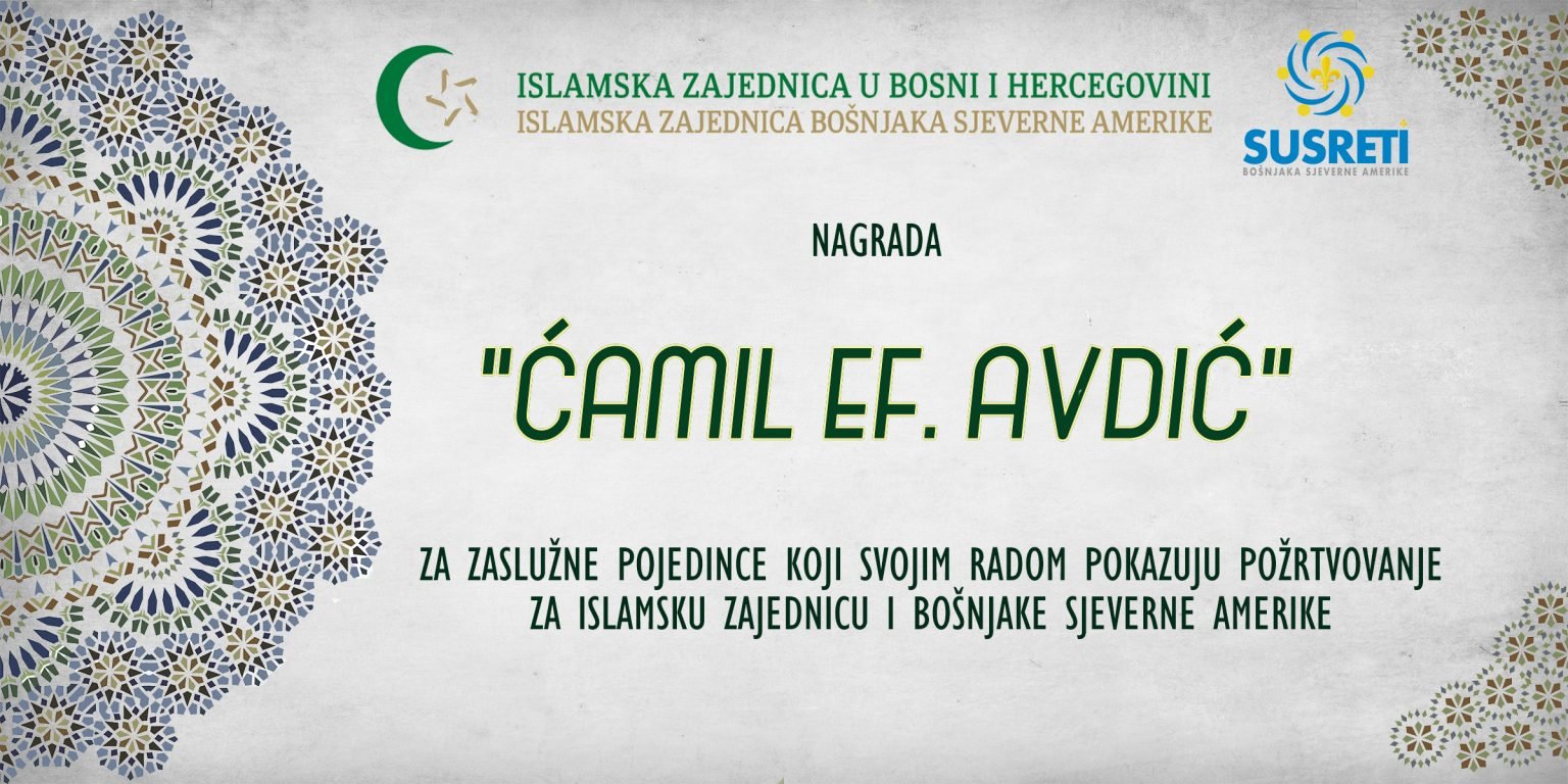 - Priznanje “ĆAMIL EF. AVDIĆ” dodjeljuje se pravnim i fizičkim licima za životno djelo i izuzetan doprinos vjerskom životu, radu i djelovanju Bošnjaka koji su svojim radom i odnosom prema radu doprinijeli ugledu Islama i Islamske zajednice Bošnjaka Sjeverne Amerike, kao i za izuzetan doprinos pisanoj riječi, obrazovnoj i općoj afirmaciji Bošnjaka, te intelektualnom i materijalnom angažmanu za vjeru Islam, Bošnjake i društvo.