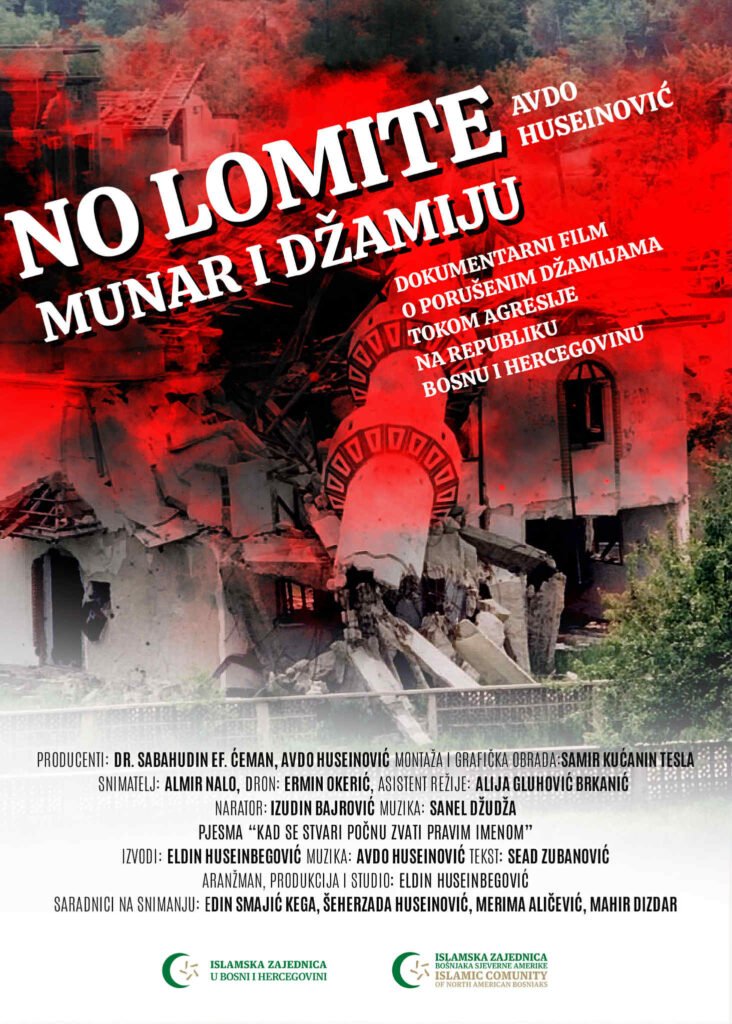 Pod pokroviteljstvom Islamske zajednice Bošnjaka Sjeverne Amerike, s ponosom najavljujemo sjevernoameričku premijeru novog dokumentarnog filma Avde Huseinovića “No lomite munar i džamiju”, koji svjedoči o porušenim džamijama tokom agresije na Republiku Bosnu i Hercegovinu.