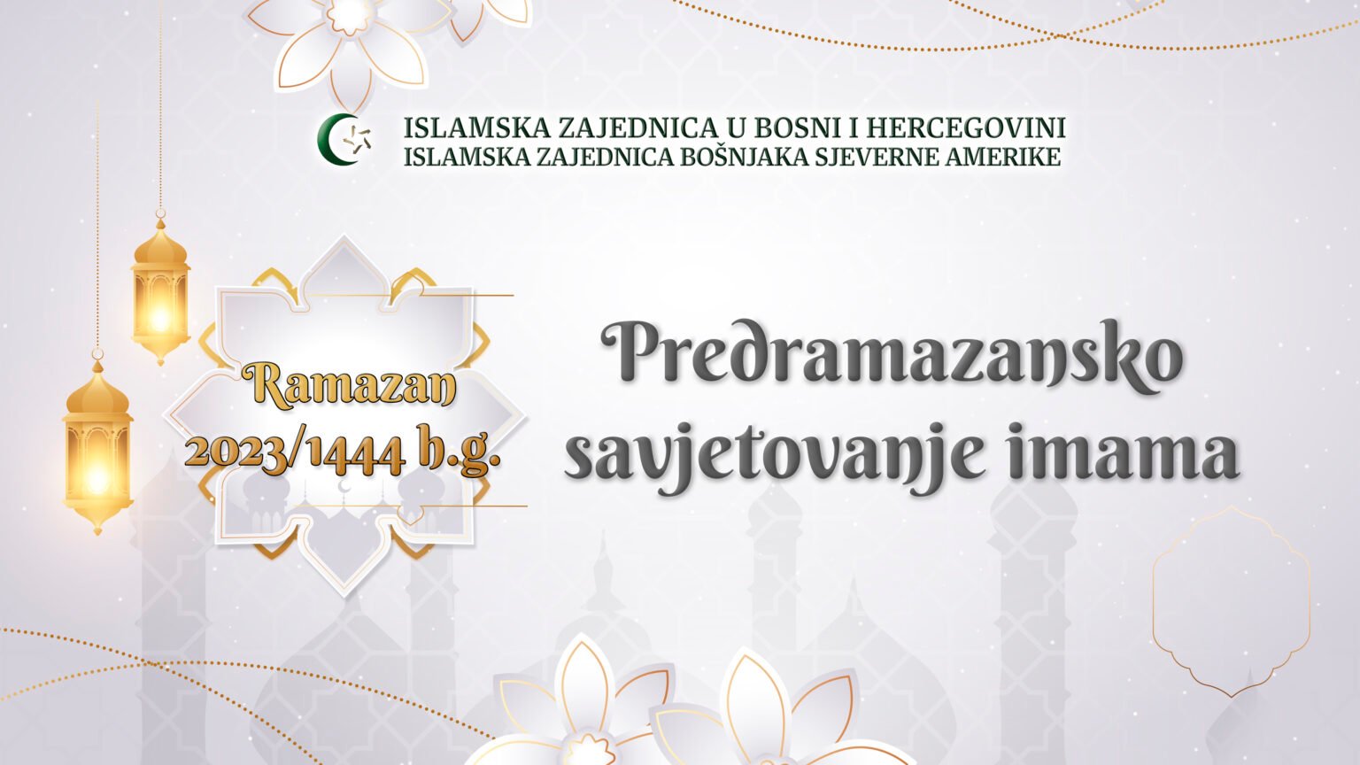 U organizaciji Islamske zajednice Bošnjaka Sjeverne Amerike, u srijedu 15. marta 2023. godine, održano je predramazansko savjetovanje putem zoom-a za imame sa područja Sjeverne Amerike. Uvodne riječi i napomene dao je muftija IZBSA Sabahudin ef. Ćemana, koji je izmeđuostalog podsjetio prisutne na Odluku o klanjanju teravih namaza od 20 rekata u svim džematima, te je pozvao imame i džemate da ulože dodatne napore kako bi ramazanski ambijent učinili sigurnim za sve džematlije tokom aktivnosti u našim džamijama.