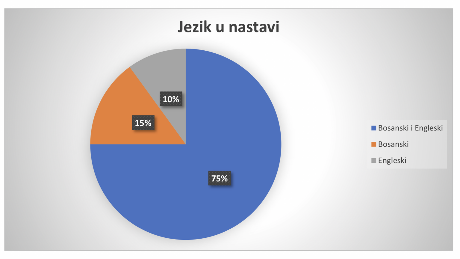 U većem broju džemata džemata, nastava se odvija na oba jezika, tj. i na bosanskom i na engleskom (u oko 75% džemata), u 15% džemata nastava se odvija isključivo na bosanskom jeziku, dok svega 10% džemata insistira na realizaciji nastavnog gradiva isključivo na engleskom jeziku.